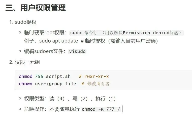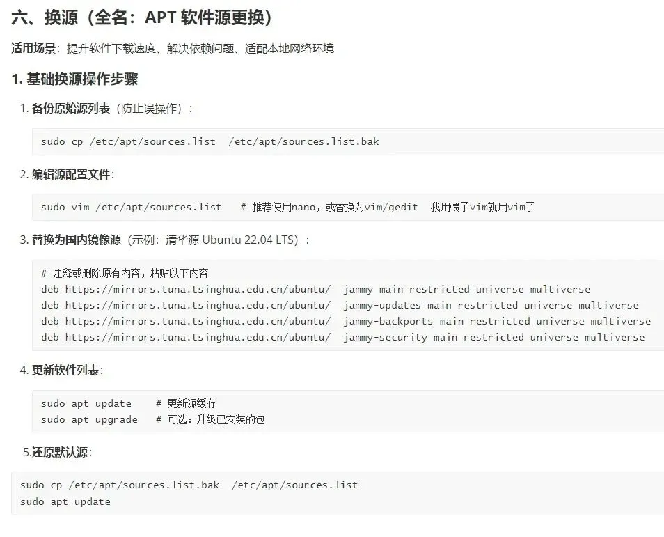 刚接触 Linux 不知道从哪学起?我把最核心的命令都给你整理好了。终端怎么召唤,复制粘贴怎么用,文件怎么复制移动删除,目录怎么切换,权限怎么设置,软件怎么安装,系统信息怎么查,甚至连国内源怎么换都写清楚了。掌握这些,Linux 基础就算入门了。
