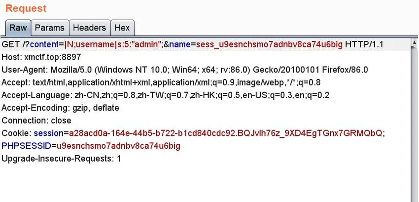 在利用漏洞之前,我们需要理解PHP Session的存储方式:文件命名规则:sess_<sessionid>(例如:sess_abc123)这意味着Session中有一个名为 name 的变量,值为 spoock,长度为6。题目在处理Session时,会将 content 参数拼接到默认字符串中。这里的关键在于:🔸利用 |N (null的序列化表示)分隔键名与内容通过精心构造payload,我们可以注入恶意的Session内容,从而绕过验证逻辑,获得flag访问权限。