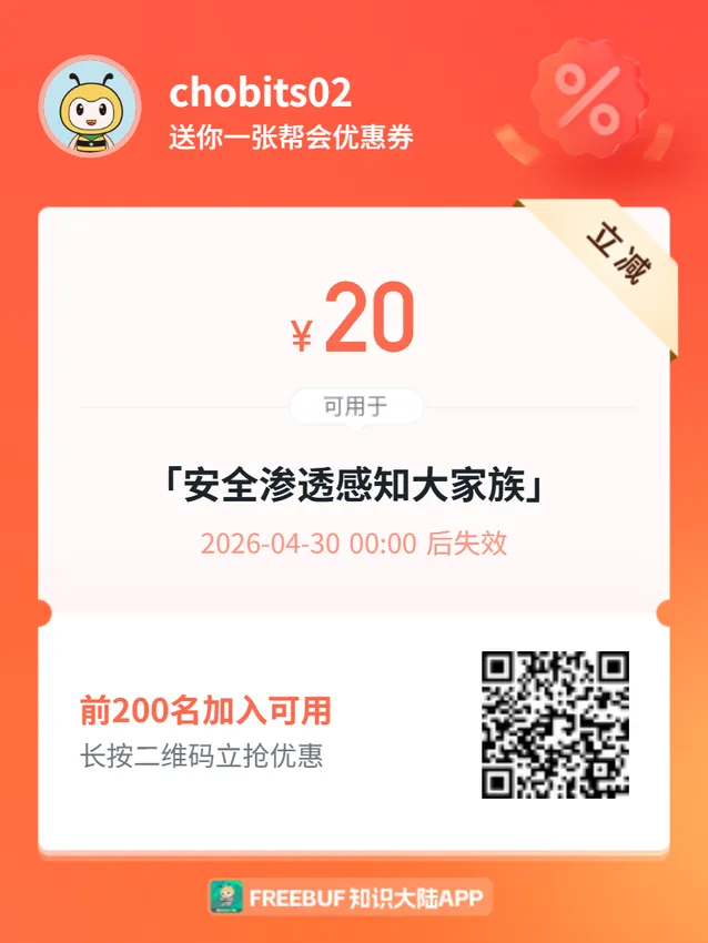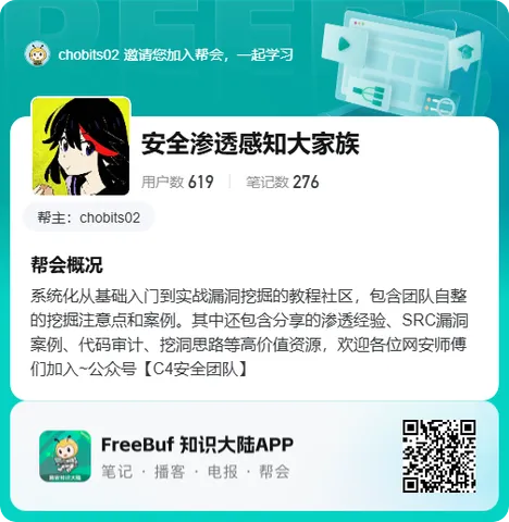 感兴趣的师傅可以公众号私聊我进团队交流群,咨询问题,hvv简历投递,nisp和cisp考证都可以联系我内部src培训视频,内部知识圈,可私聊领取优惠券,加入链接:https://wiki.freebuf.com/societyDetail?society_id=184(新人优惠券折扣20.0¥,扫码即可领取更多优惠)加入团队、加入公开群等都可联系微信:yukikhq,搜索添加即可