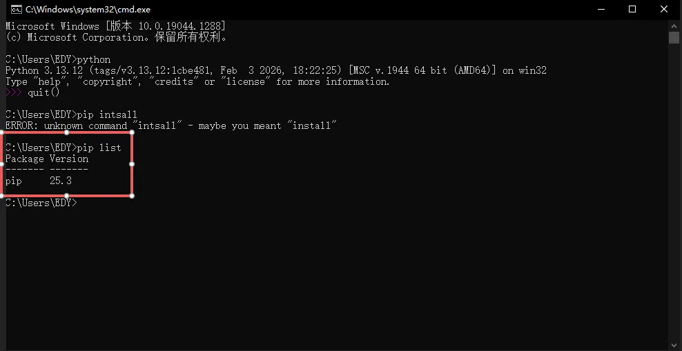 输入“pip list"看到目前有的库。
