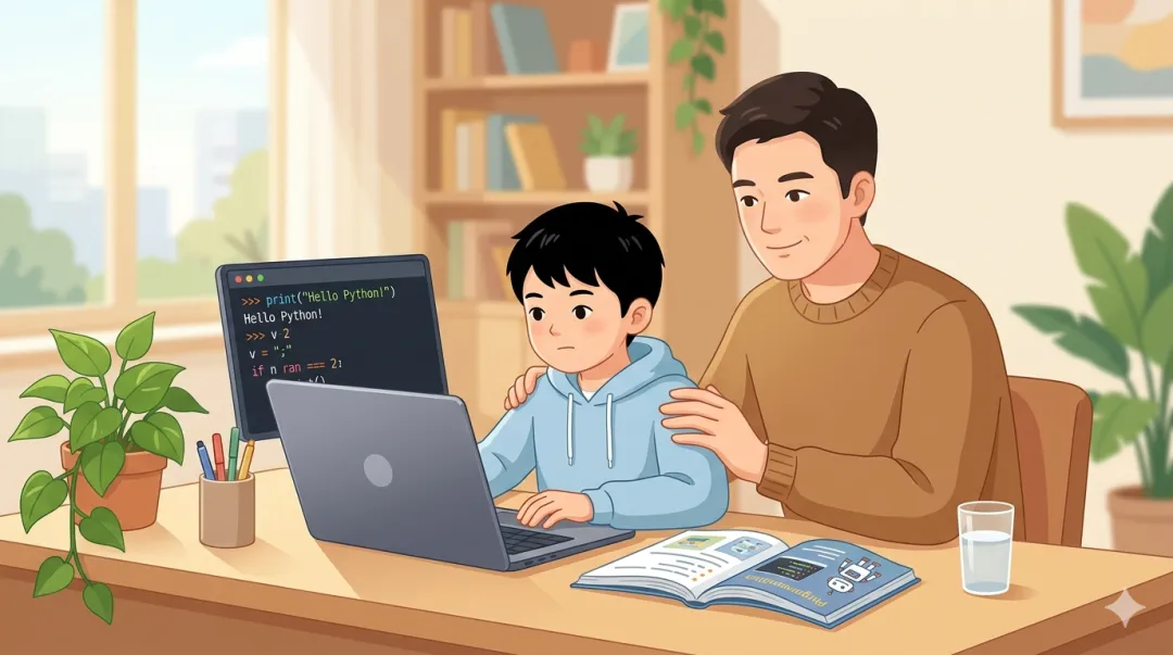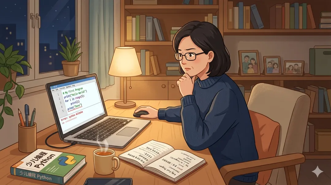 而是当孩子第一次报错、第一次怀疑自己、第一次想放弃的时候,而是一个知道"报错很正常、卡住很正常、慢一点也正常"的大人。如果你身边也有想陪孩子学、又总觉得自己不会的家长,我想看看,有多少家长愿意先自己卡一遍,再去理解孩子为什么会卡。