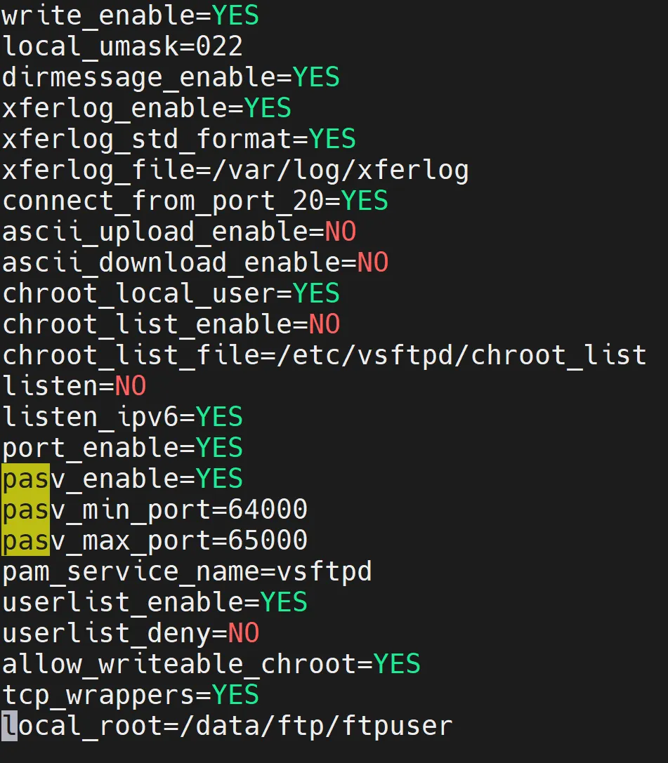 listen_port=21 | | FTP 控制端口,默认 21,可自定义修改提升安全性 |