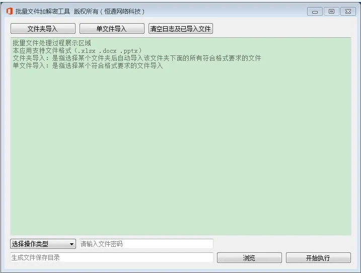 批量文档加密/解密软件工具,批量导入wps/office文档,支持.docx/.xlsx/.pptx格式的文档设置密码后进行批量加密/批量解密操作。软件永久可用无需激活、无需机器绑定,支持windows7/10/11操作系统。