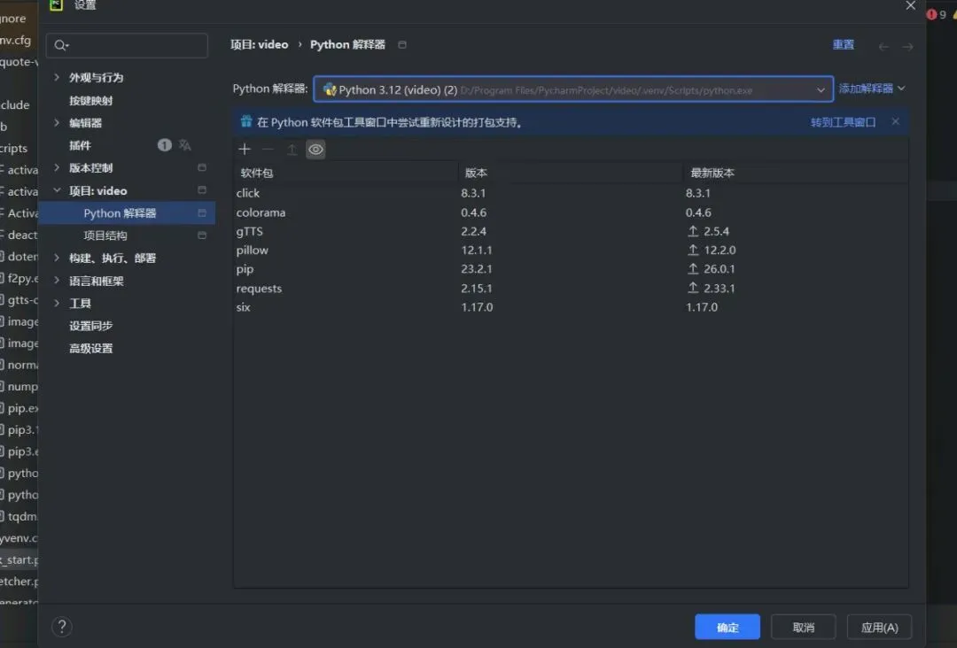 进入pycharm页面发现我昨天安装的包都不存在了,后面发现又要选择python编译器,以为是没自动保存到,然后重新选择了一个编译器地址,发现与昨天的地址不一致,改成了和昨天一致的地址,但是前面多了一个编号。
