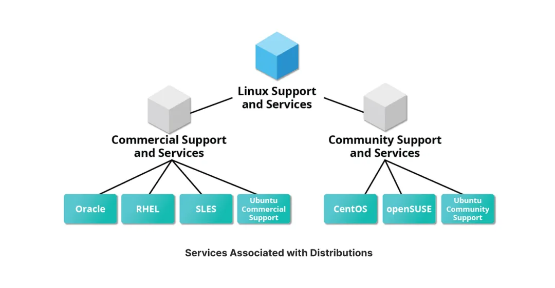 Linux发行版生态树状图——商业支持与社区支持两大分支Linux发行版的核心组成