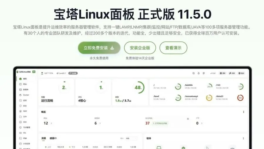本文写的是比较常用的宝塔面板安装和简单的配置教程。