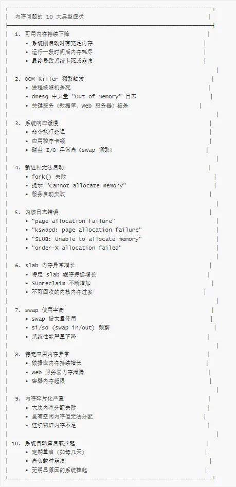 Linux 系统内存问题症状