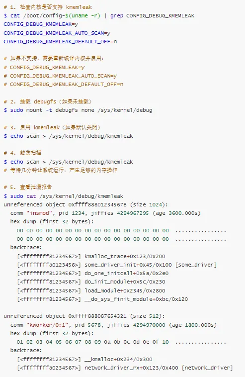 # 1. 启用 kmemleak