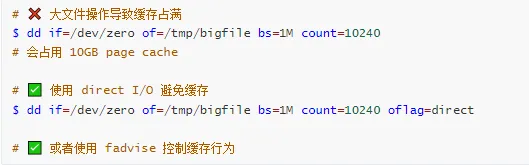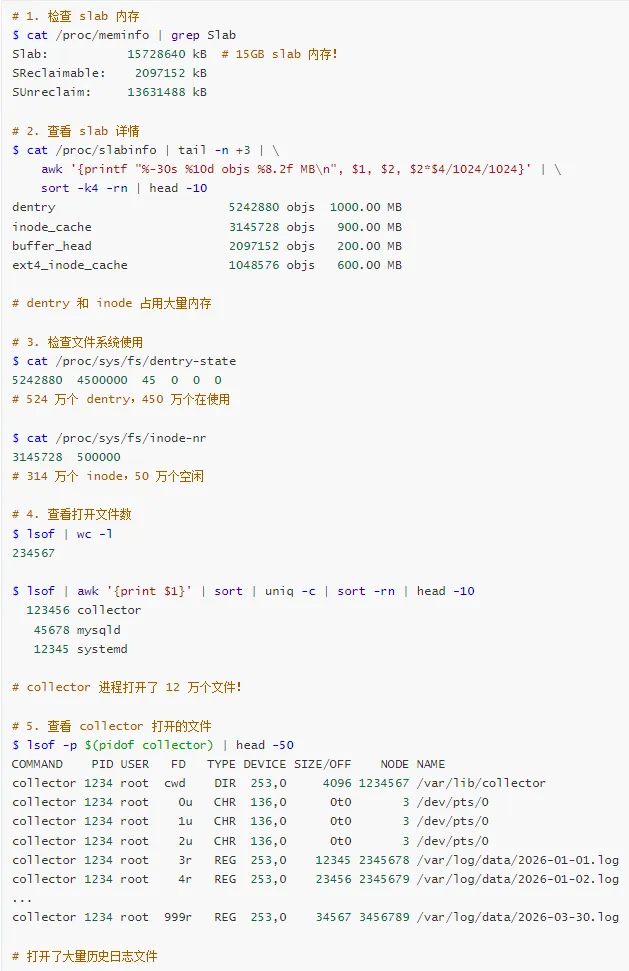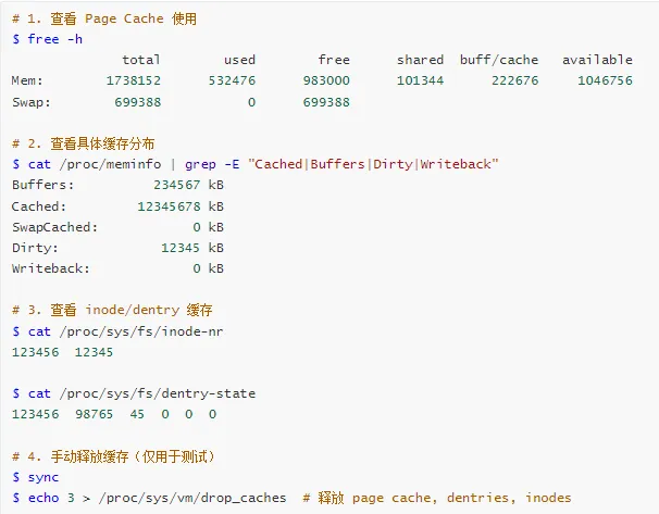 缓存问题 → 检查 page cache、slab
