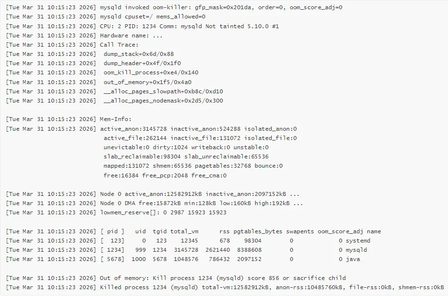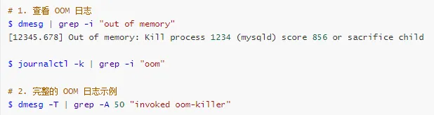 | OOM 日志分析 | dmesg | dmesg \| grep -i oom |