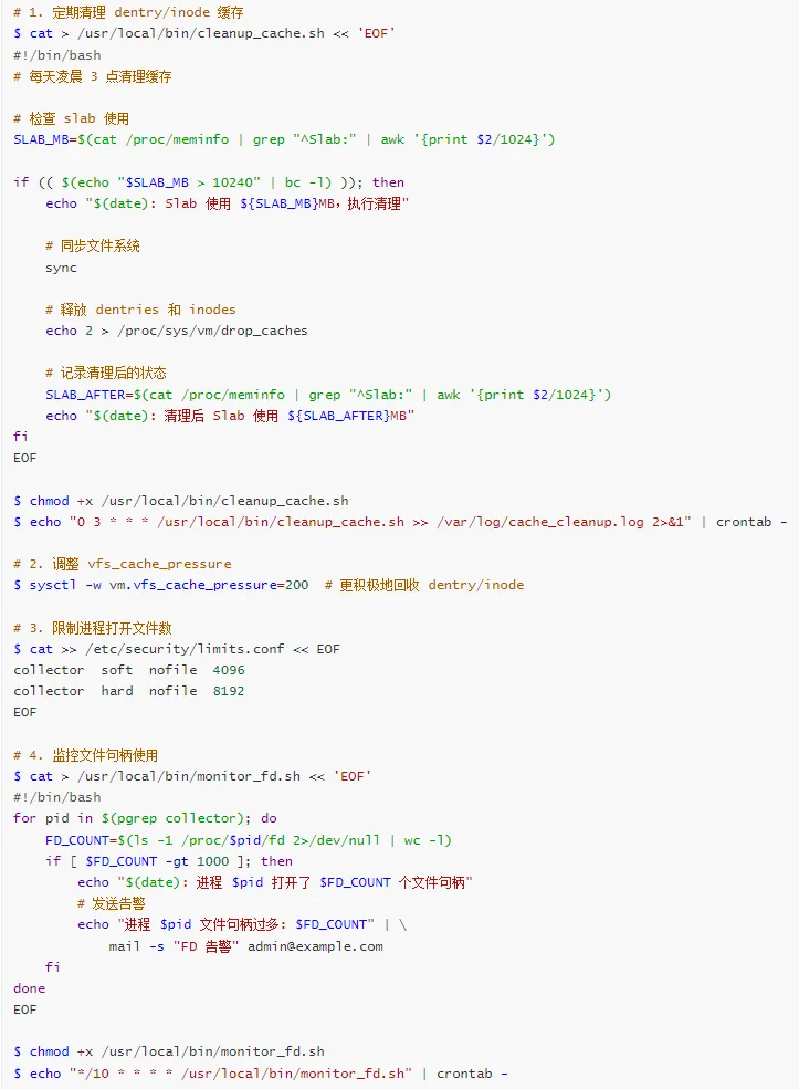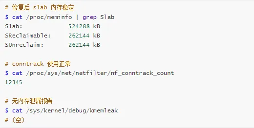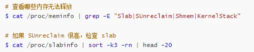 echo "⚠️ 警告: 不可回收的 slab 内存过多 (${SUNRECLAIM}MB)"