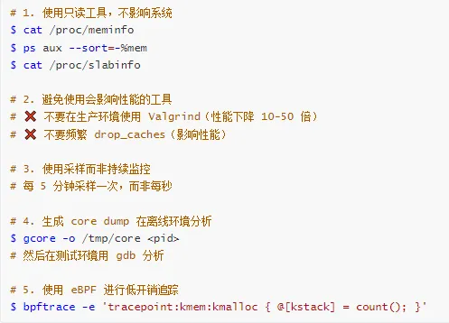 Q9: 如何在生产环境安全地排查内存问题?