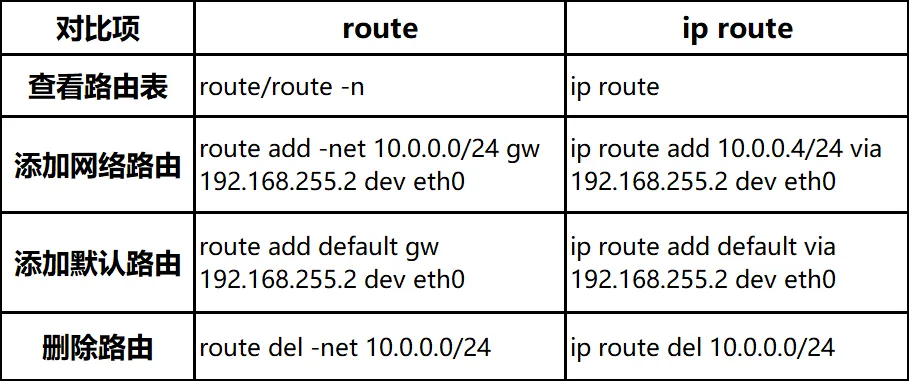 route 命令 VS ip route 命令验证修改结果