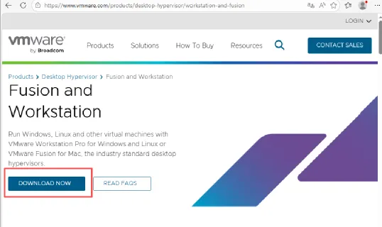 访问 VMware 官方网站(https://www.vmware.com/products/desktop-hypervisor/workstation-and-fusion),点击进入下载页面。
