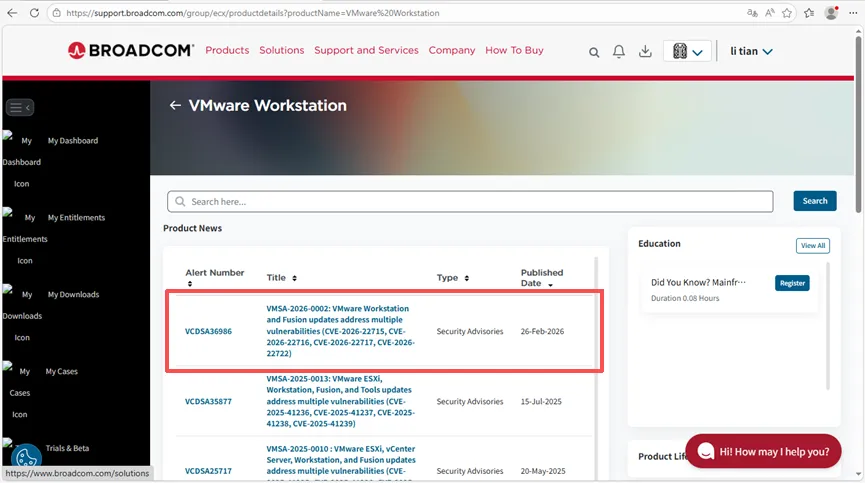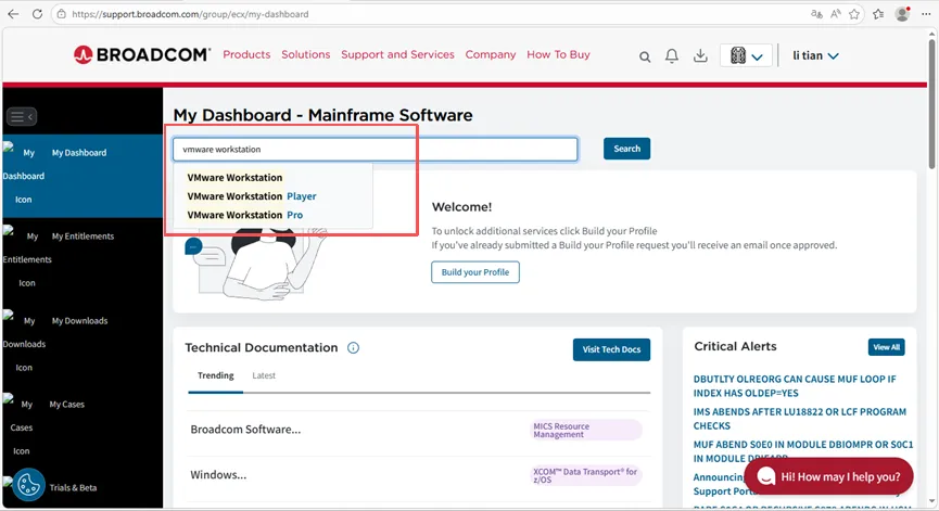 登录成功后,在搜索框输入vmware workstation,点击搜索。