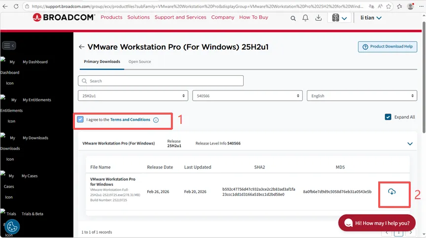点击下载地址,注意windows系统要选择VMware Workstation的下载地址。