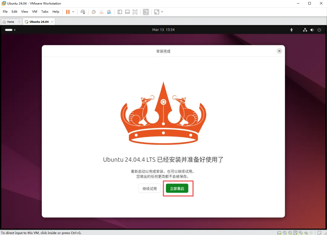 至此,你已经成功在 VMware 虚拟机中安装好了 Linux 系统!现在你可以像使用一台真正的电脑一样探索 Ubuntu 了。