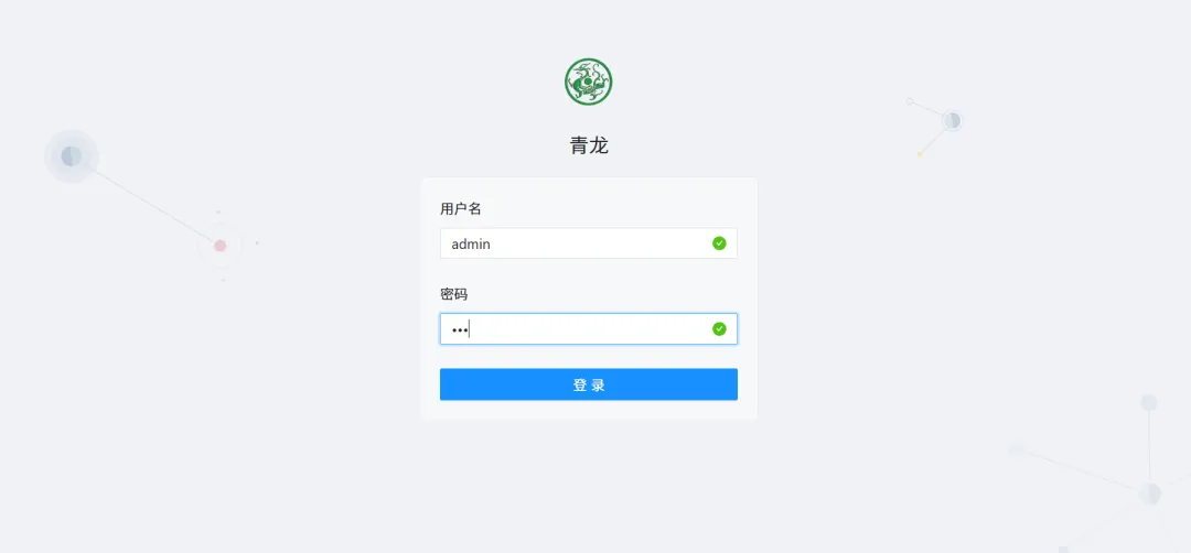 npm i @whyour/qinglong -g# 然后在项目目录:git clone https://github.com/whyour/qinglong.gitcd qinglongcp.env.example .env# 推荐使用 pnpm 提速:npm install -g pnpm@8.3.1pnpm installpnpm start# 打开浏览器,访问 http://127.0.0.1:5700