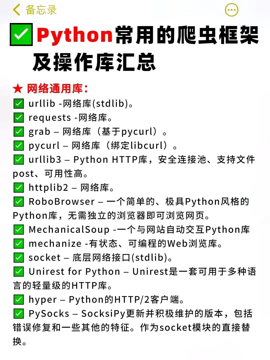 数据时代,爬虫是高效采集信息的核心利器!Python凭借丰富生态稳居爬虫首选,从入门到进阶工具一应俱全。本文一次性汇总高频框架与操作库,覆盖请求、解析、反爬、分布式全场景,新手快速上手、老手速查即用,帮你告别工具选择困难,轻松搞定各类网页数据抓取。
