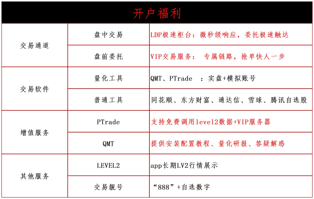 福利6:极速柜台,量化投资者专用,速度微秒级