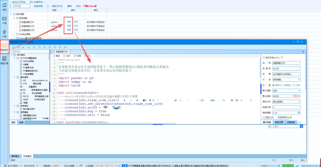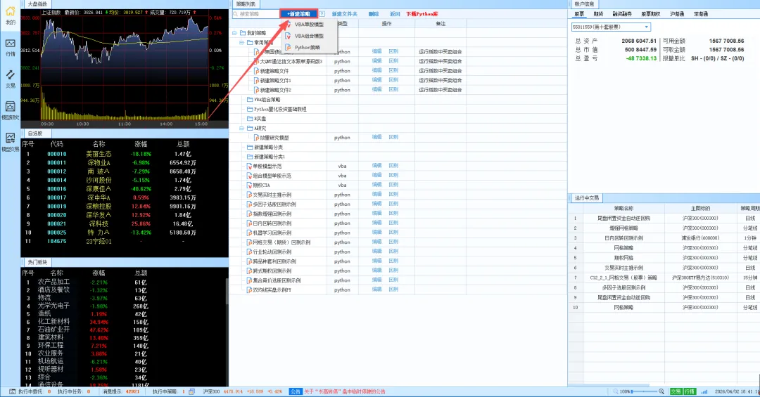 不管是选择python还是VBA,编写策略的入口都一样:
