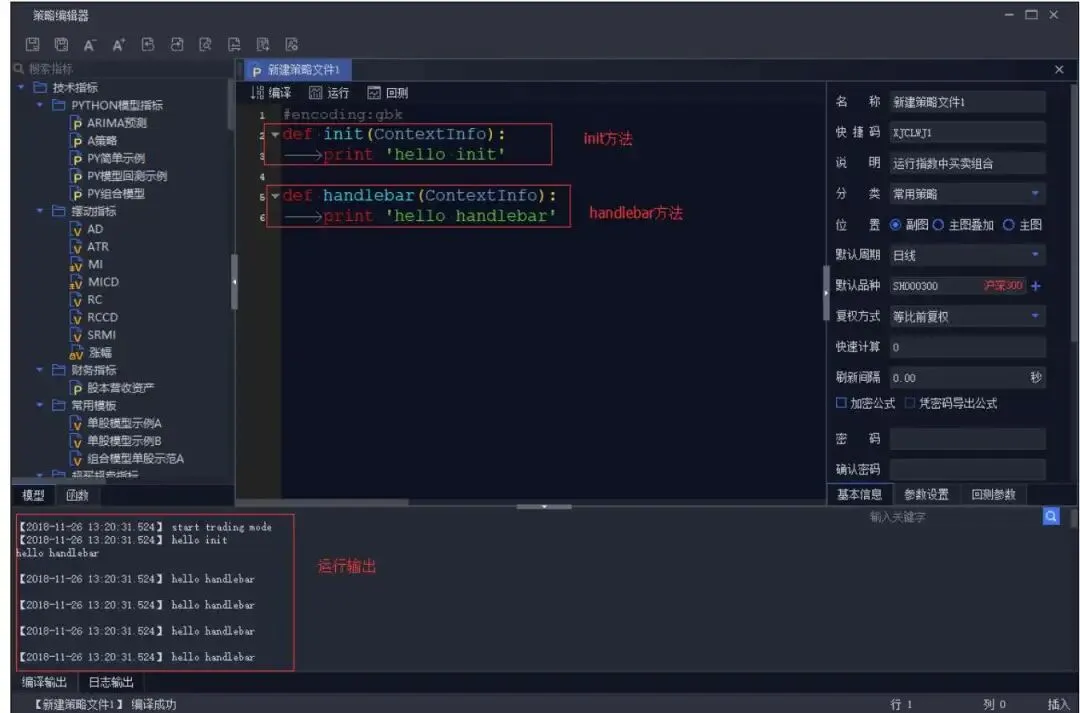 # 简单的Python策略示例def init(ContextInfo):# 初始化函数,策略启动时运行一次print("hello init")# 定义股票池、参数等 ContextInfo.stocklist = ['******.SZ']def handlebar(ContextInfo):# 主函数,每个K线周期运行一次print("hello handlebar")# 编写主要的交易逻辑