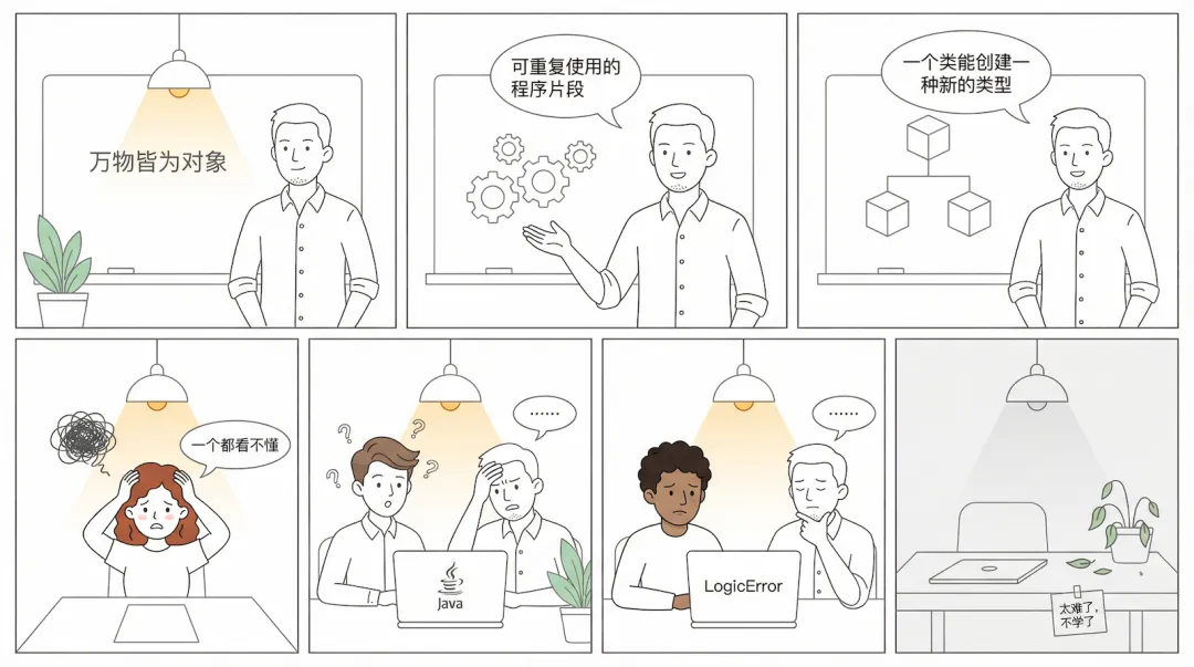 我让他们买市面上的入门书,结果反馈几乎一致:"这书写的是啥?"