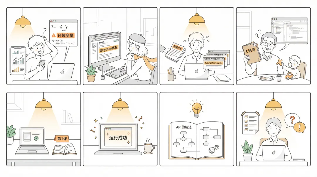 你是那个刚毕业的实习生,老板丢给你一个数据分析的任务,你硬着头皮搜教程,却发现每个教程都默认你已经会了别的东西。