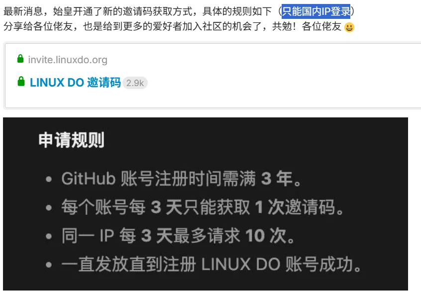 另一边,它过去的入口也不算完全敞开。根据社区公开信息,Linux.do 以前的邀请机制大致是这样: