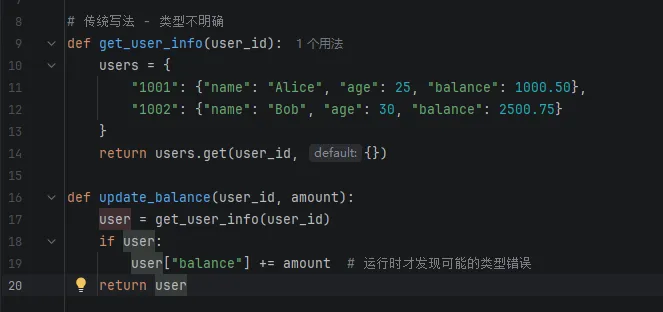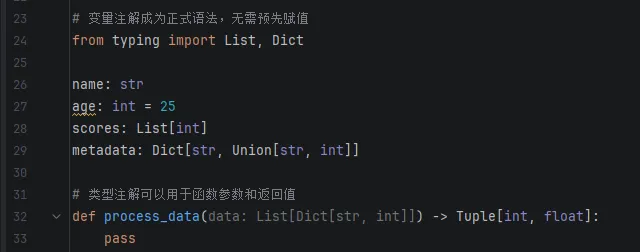 最近在看python代码的时候,特别是比较新版本的代码,都加了类型注解。以前说python语法简单,变量拿起来就用,根本不用关心这个变量是str还是int还是list,赋值什么就是什么。但当程序复杂之后会出现一个问题,比如你定义一个函数有几个变量,在使用这个函数的时候这个变量到底是什么类型呢?