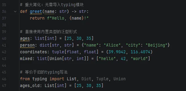 其实python的容易与出错是一个需要平衡的事情,很多事情过于简单就容易出错。随着python版本的发展,类型注解逐渐成为主流,让程序看起来美观、易用,又能提升性能。