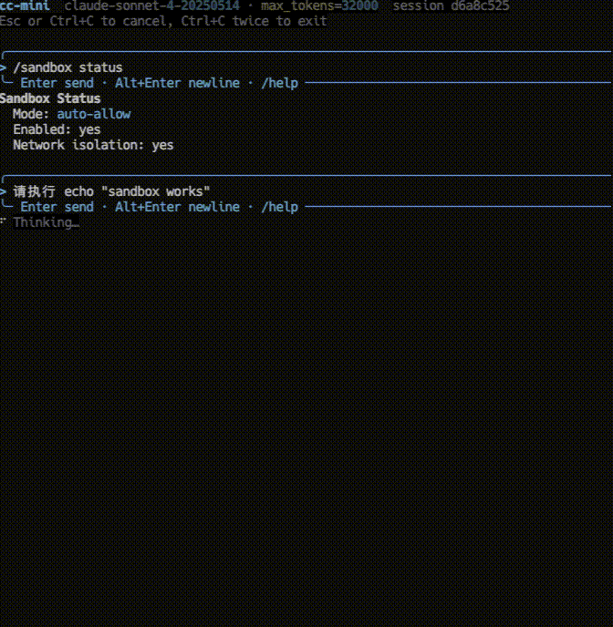 让 AI 跑 Bash 命令一直是个心理关。cc-mini 用 Linux 原生的 bubblewrap 给每条命令套了一层沙盒,这套机制直接来自原版源码的实现: