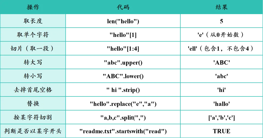 # 字符串转列表s = "a,b,c"lst = s.split(",") # ['a', 'b', 'c']# 列表转字符串new_s = "-".join(lst) # 'a-b-c'join的写法有点反直觉:前面的是连接符,后面的是列表。记成“用啥连接,就调谁的join”。