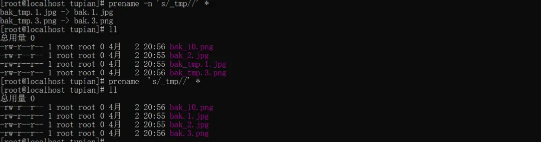 1. 操作前务必用-n预览,避免文件改名错误无法恢复;