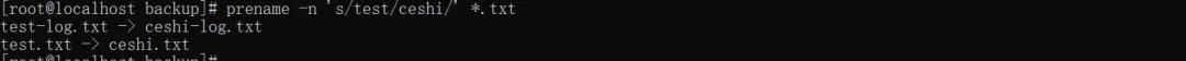批量改文件最怕改错,加 - n 参数预览效果,确认无误再执行#只预览,不实际修改prename -n 's/test/ceshi/' *.txt