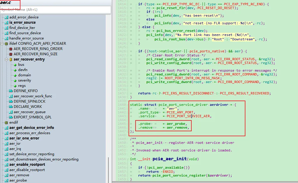 drivers/pci/pcie/aer.c,是Linux内核PCIe子系统的重要组成部分