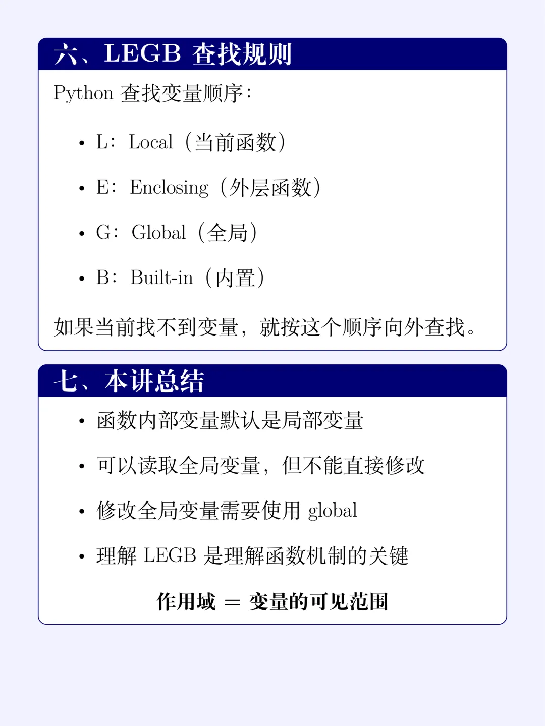 当你在代码里引用一个变量时,Python 会按照以下顺序从内向外像剥洋葱一样查找: