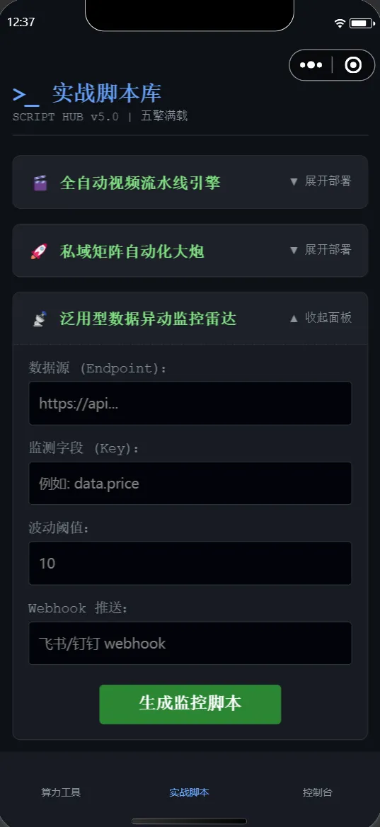 展开 【泛用型数据异动监控雷达】,填入你的监控目标,即可免费生成专属源码!