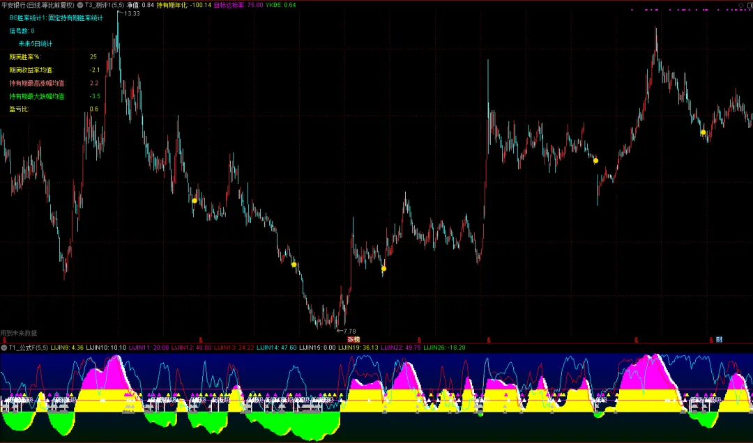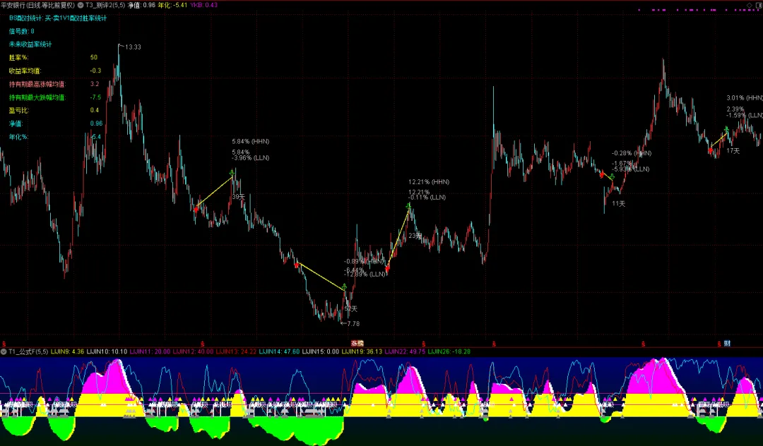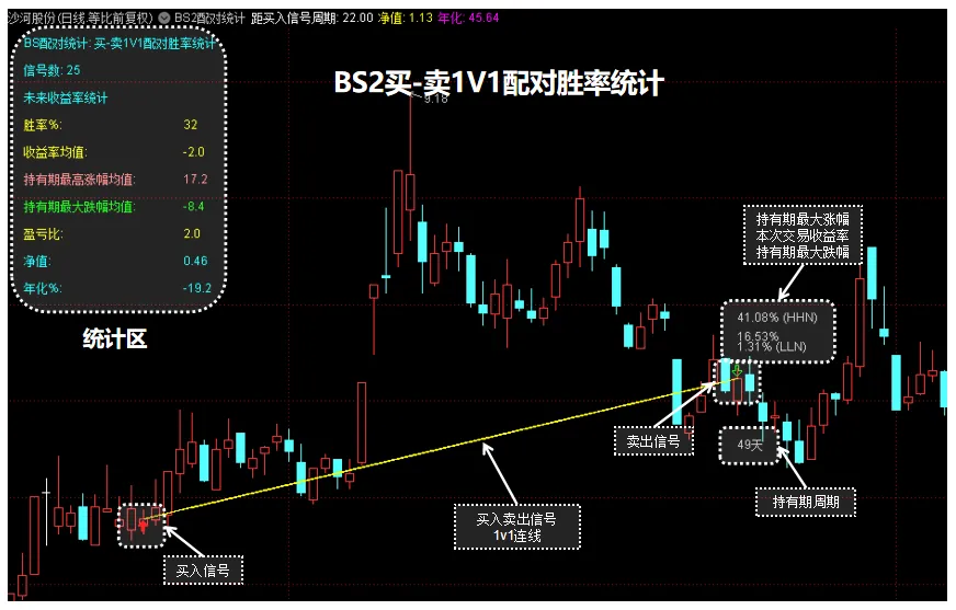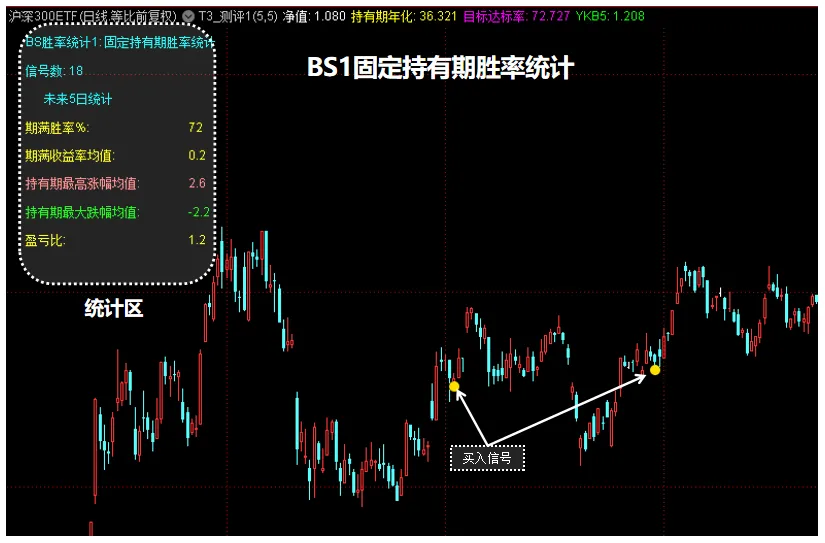BS1胜率统计工具效果展示*BS1胜率统计工具在K线图上的效果展示*
