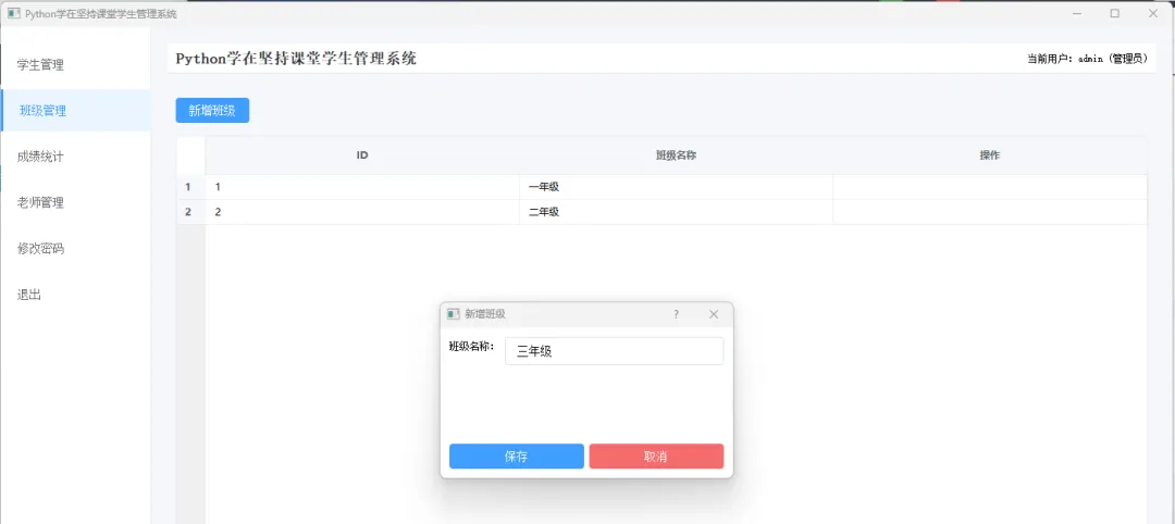 很多新手会觉得GUI开发、数据库操作、数据可视化是三个独立的难点,但今天这套系统将三者完美融合:界面设计遵循美观大方的原则,不透明质感搭配规整布局,视觉效果超好看;功能上覆盖登录验证、学生/班级/教师全维度管理、Excel批量导入导出、成绩柱状图统计,还实现了管理员与教师的权限区分;代码结构清晰模块化,零基础也能看懂、能修改、能拓展。接下来我就带大家拆解核心代码,手把手带你实现这款全能成绩管理系统,看完就能直接上手用!