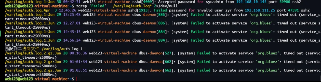 zgrep 'Failed' /var/log/auth.log* 2>/dev/null