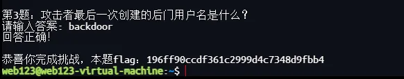 与此同时第三题的答案也很明显,后门的用户名其实就是backdoor(其实猜都可以猜出来)