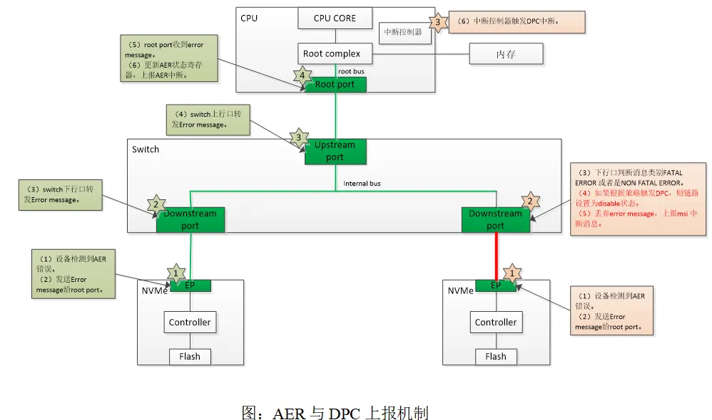 - 协同方式 当AER检测到不可纠正错误时,触发DPC机制进行端口隔离