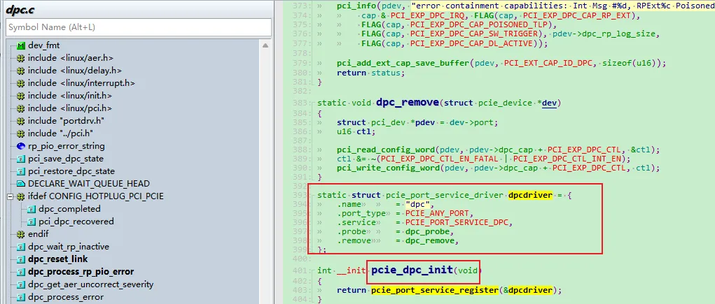 - 驱动注册在Linux系统中,DPC服务作为PCIe端口服务驱动注册