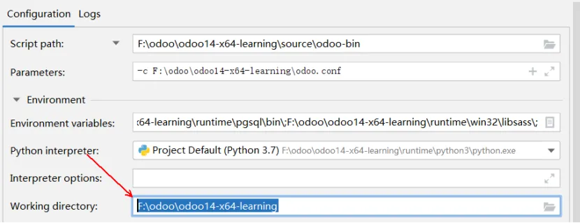 有时候,start.bat运行odoo没有问题,但是PyCharm提示找不到目录的时候,尝试修改working directory路径。3.PyCharm调试技巧