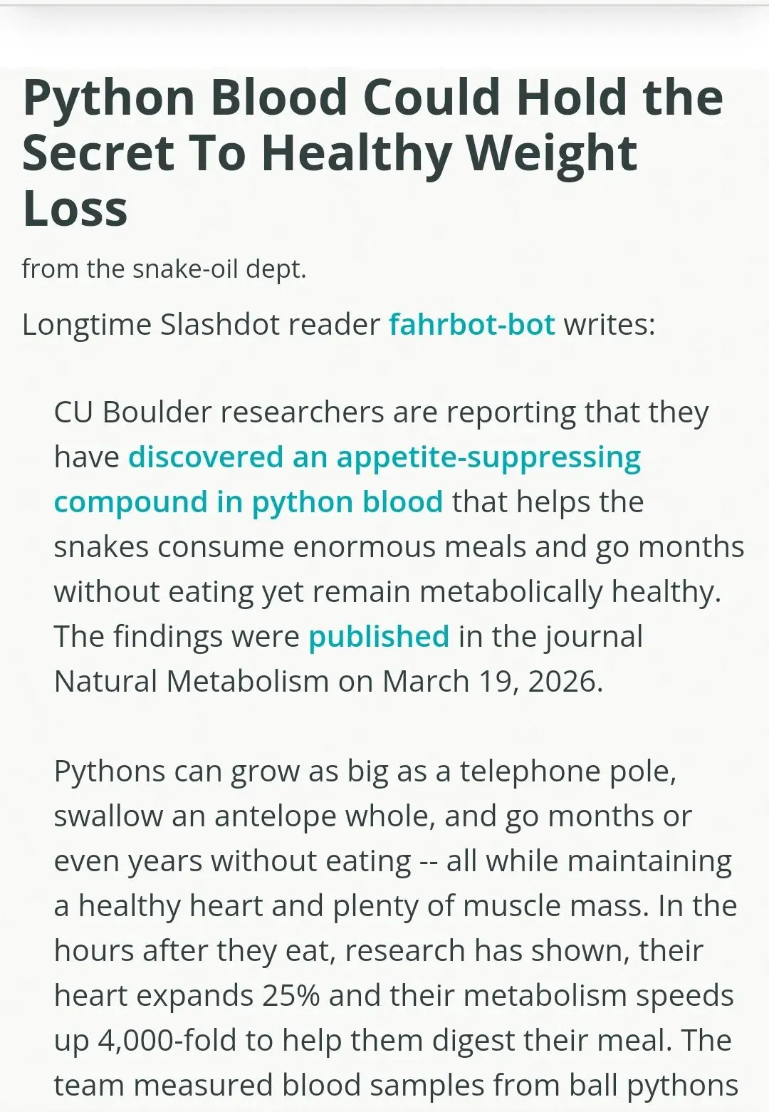 “Python Blood Could Hold the Secret To Healthy Weight Loss” 看完标题你的第一反应是什么?