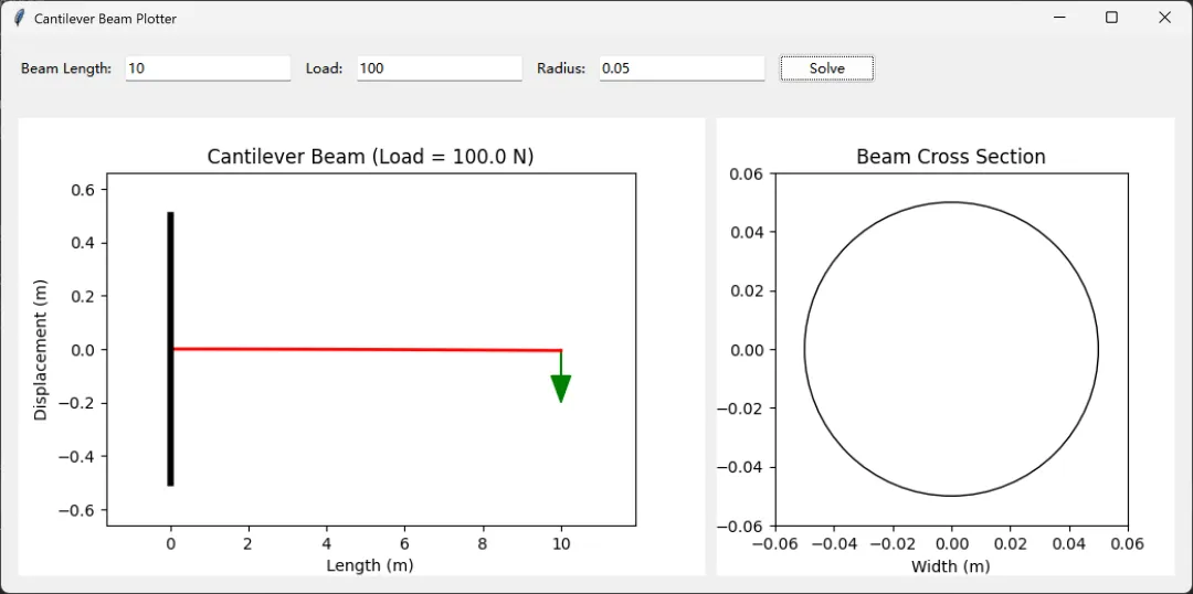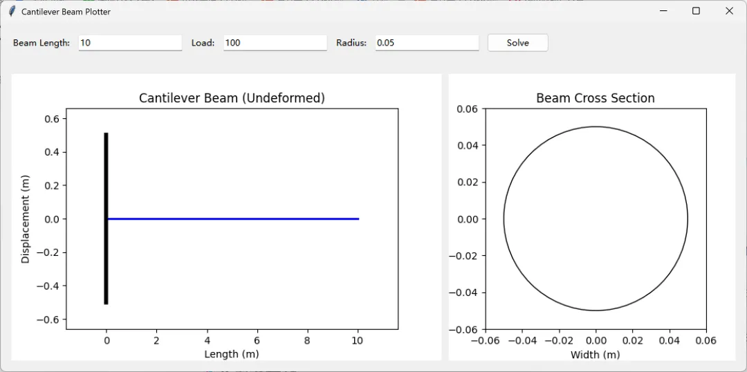 # 創建梁變形圖形和畫布 self.figure = plt.Figure(figsize=(6, 4)) self.ax = self.figure.add_subplot(111) self.canvas = FigureCanvasTkAgg(self.figure, master=left_frame) self.canvas.get_tk_widget().pack(fill=tk.BOTH, expand=True) # 創建截面圖形和畫布 self.section_figure = plt.Figure(figsize=(4, 4)) self.section_ax = self.section_figure.add_subplot(111) self.section_canvas = FigureCanvasTkAgg(self.section_figure, master=right_frame) self.section_canvas.get_tk_widget().pack(fill=tk.BOTH, expand=True) # 設置網格權重 master.grid_rowconfigure(1, weight=1) master.grid_columnconfigure(0, weight=1) master.grid_columnconfigure(1, weight=1) bottom_frame.grid_rowconfigure(0, weight=1) bottom_frame.grid_columnconfigure(0, weight=2) bottom_frame.grid_columnconfigure(1, weight=1) # 綁定調整大小事件 self.canvas.get_tk_widget().bind("<Configure>", self.on_resize) self.section_canvas.get_tk_widget().bind("<Configure>", self.on_section_resize) # 初始繪製未變形的梁和截面 self.plot_undeformed_beam() self.plot_section()文章中一些内容引自网络,会注明出处或引用为参考文献,难免有未尽之处,如有不妥,请随时联系删除。(文章内容仅供参考,具体效果以运行结果为准)