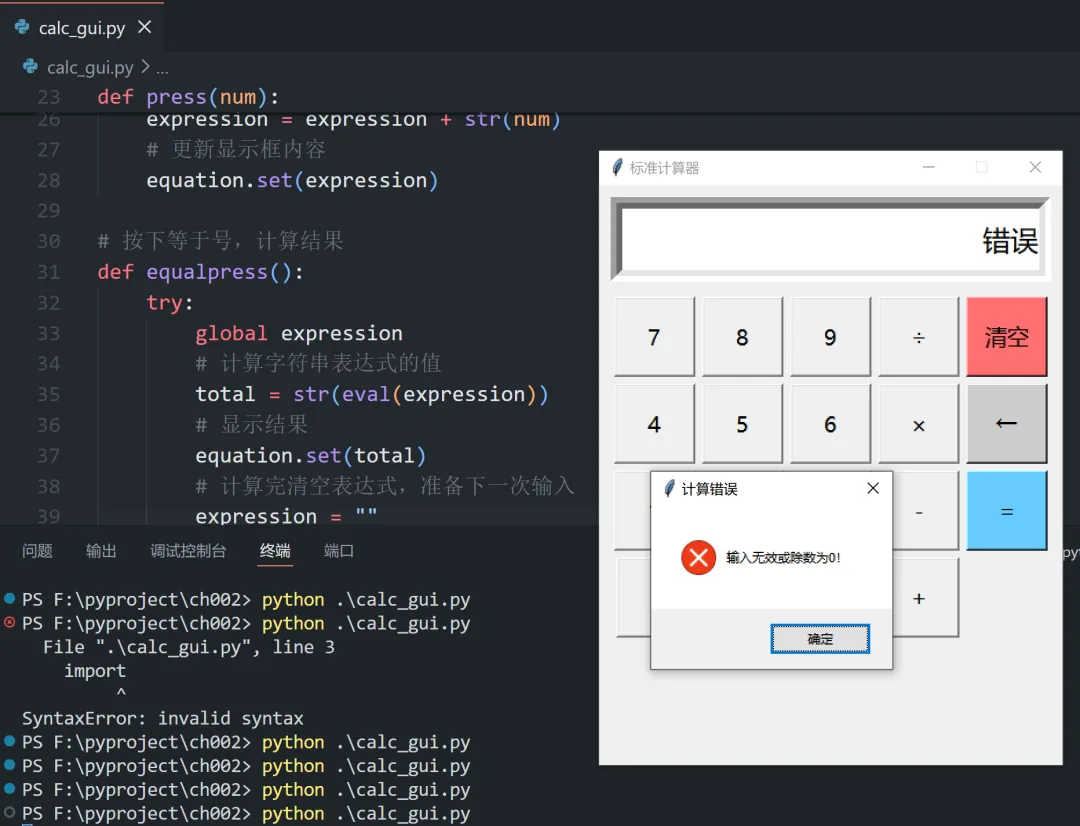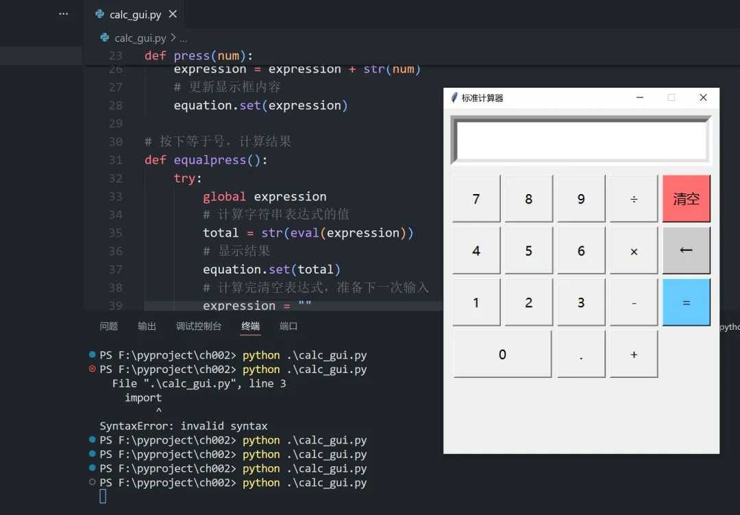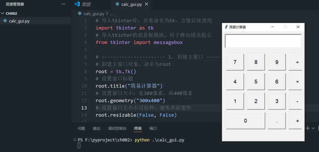 今天我们不用黑框框执行命令的方式,直接用Python内置的 Tkinter 做一个带窗口、带按钮、能点击的图形计算器,和手机计算器一样好用!